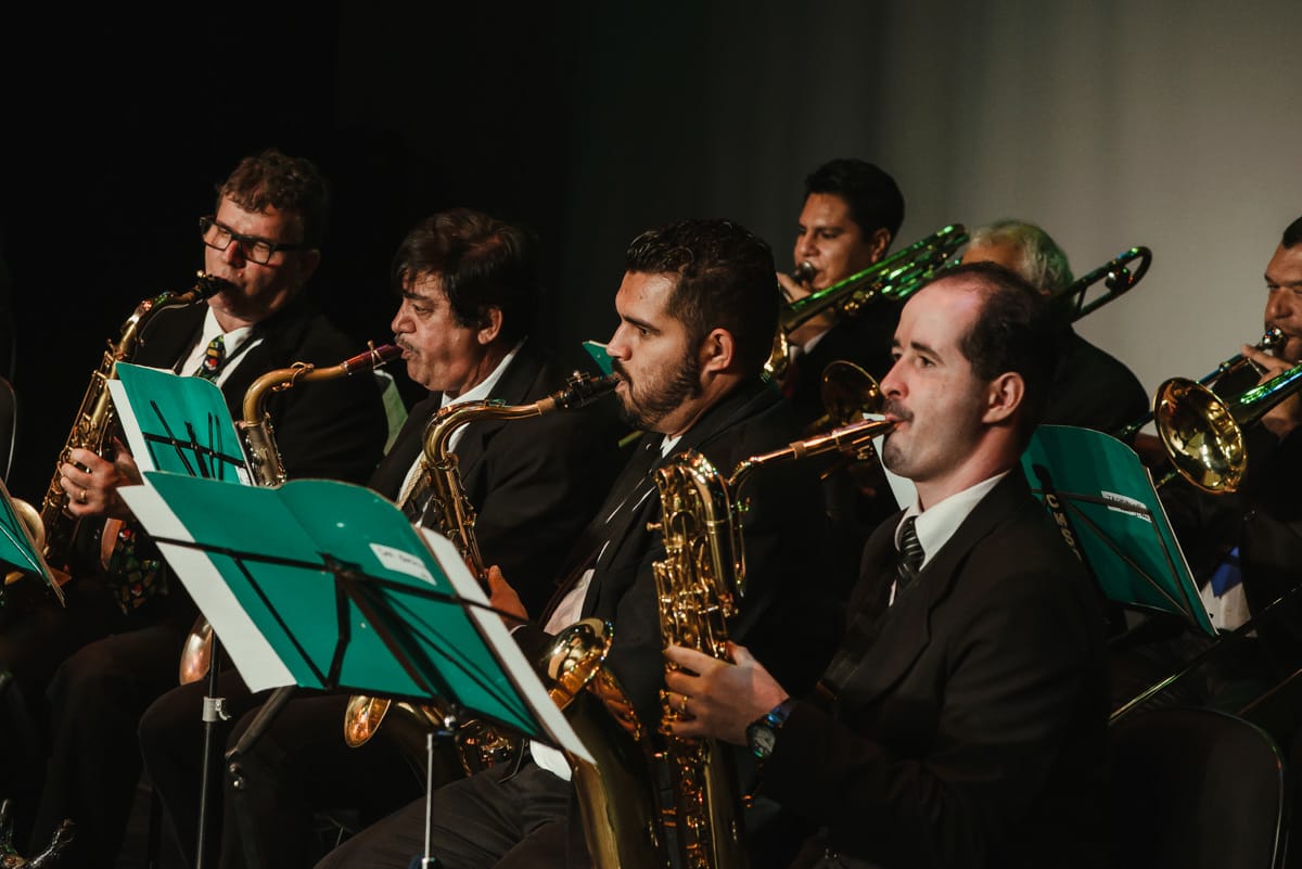 Apesar de populares, os arranjos sempre exigem muito estudo e técnica, uma “pedreira”, como dizem os músicos. Mas é um prazer tocar com gente tão talentosa”